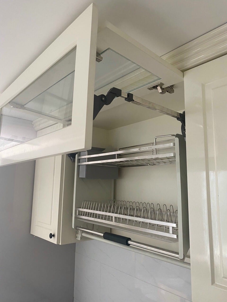 Như tên gọi thì đây chính là một phụ kiện đựng bát đĩa cho phép người dùng nâng lên hạ xuống giá bát một cách nhẹ nhàng. Nhờ vào sự kết hợp piston trợ lực giúp hỗ trợ lực cho người sử dụng.
