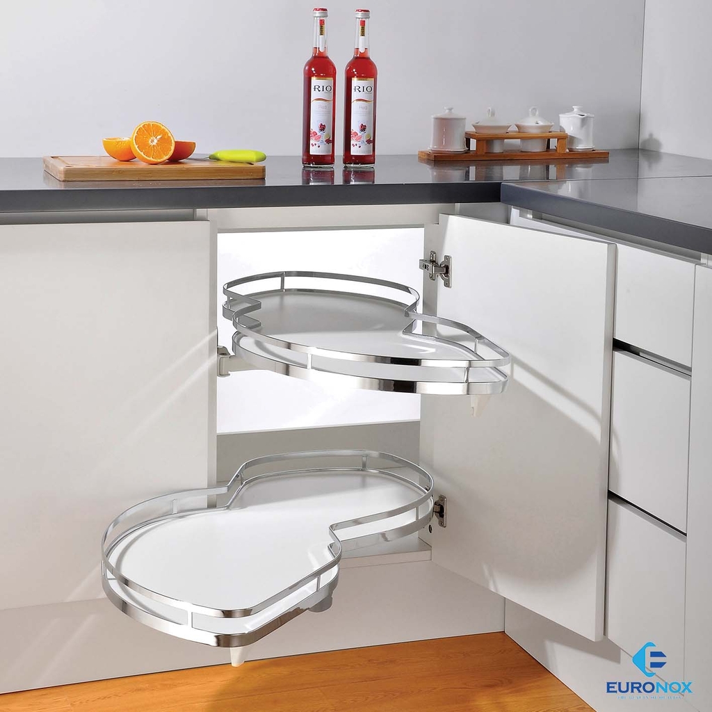 Góc chết luôn là một bài toán khó để sử dụng. Kệ góc thông minh là giải pháp hoàn hảo cho mọi góc chết trong tủ bếp.Thường các kệ góc thông minh được chia thành loại mâm xoay góc và dạng kệ liên hoàn góc.