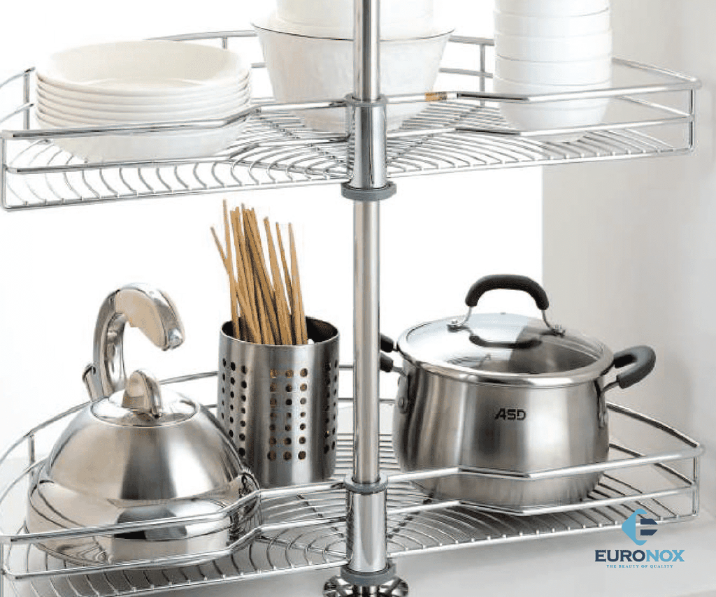 Mâm xoay góc 1/2 là một phụ kiện giá góc giúp tối ưu không gian góc chết của tủ bếp. Giá có 2 tầng mỗi tầng có thiết kế là 1/2 hình tròn nên rất thuận tiện đặt để hay lấy đồ đạc. Tìm hiểu rõ hơn sản phẩm này qua thông số bên dưới nhé!